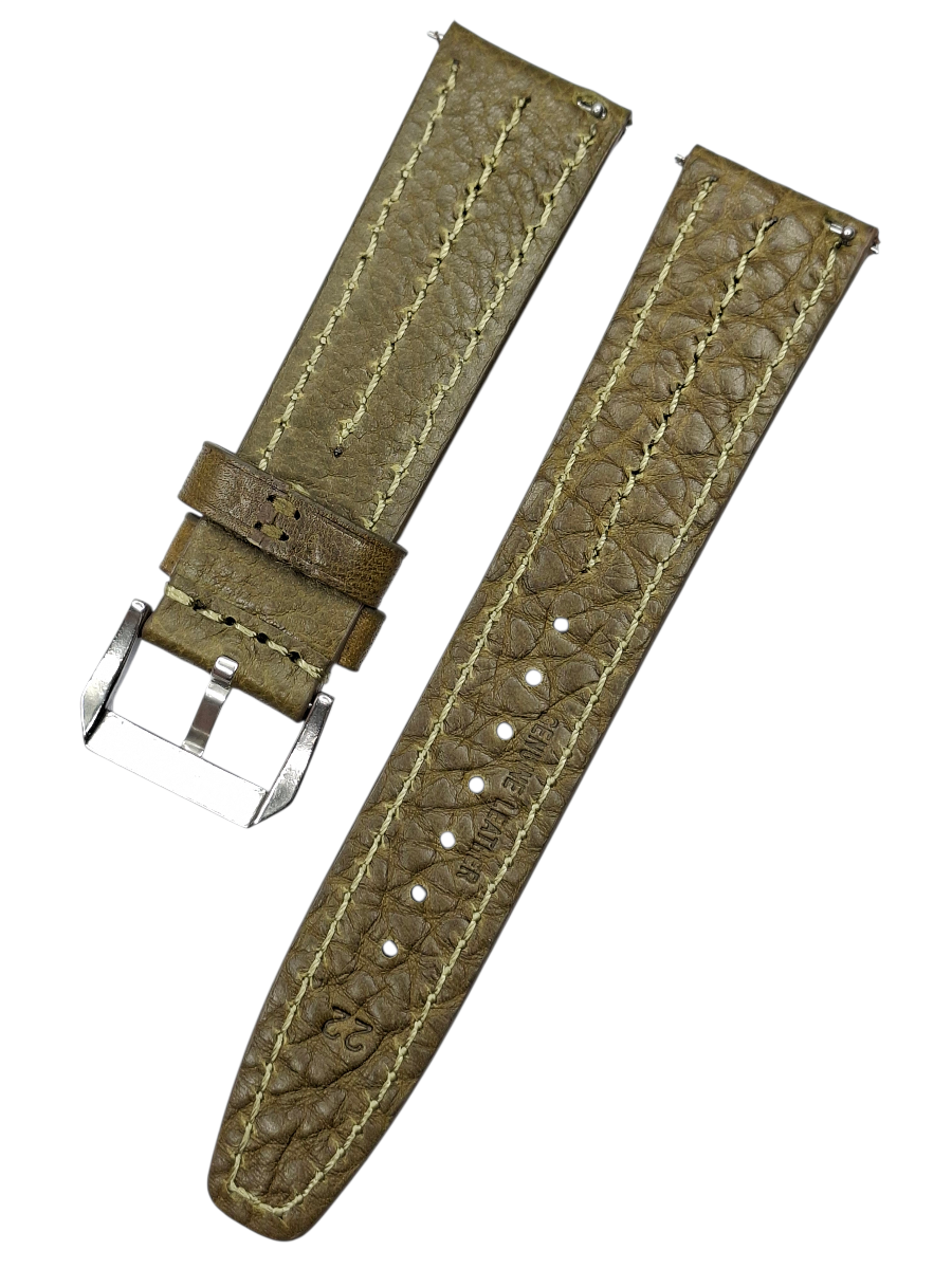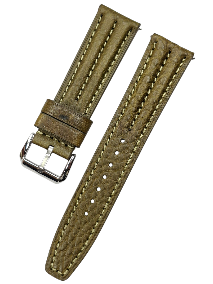 Akıllı Pimli Fitilli Yeşil Renk Deri Saat Kordonu