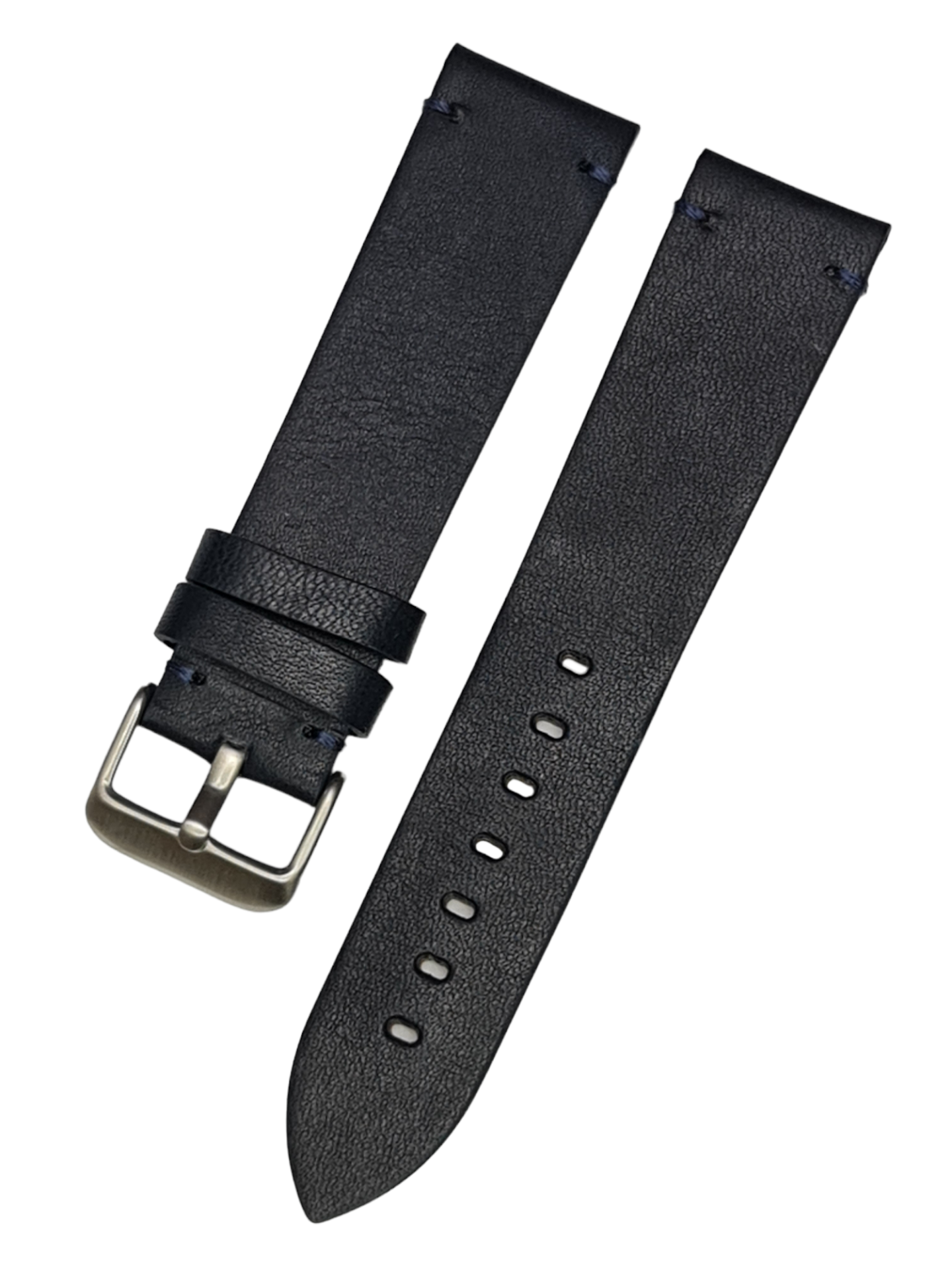 Azzuro 24mm Düz Kalın Siyah Deri Saat Kordonu