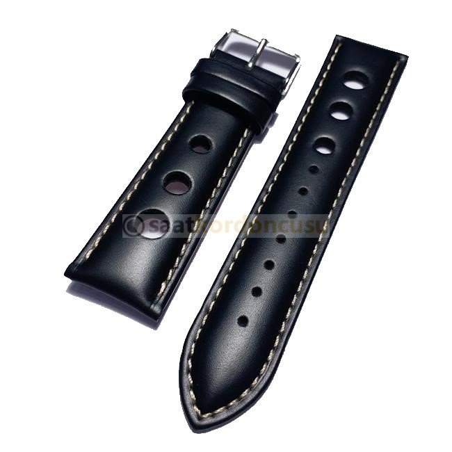 Azzuro Siyah Delikli Deri Saat Kordonu