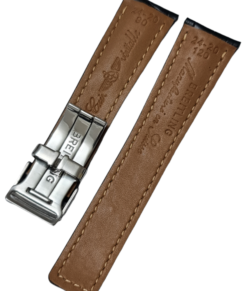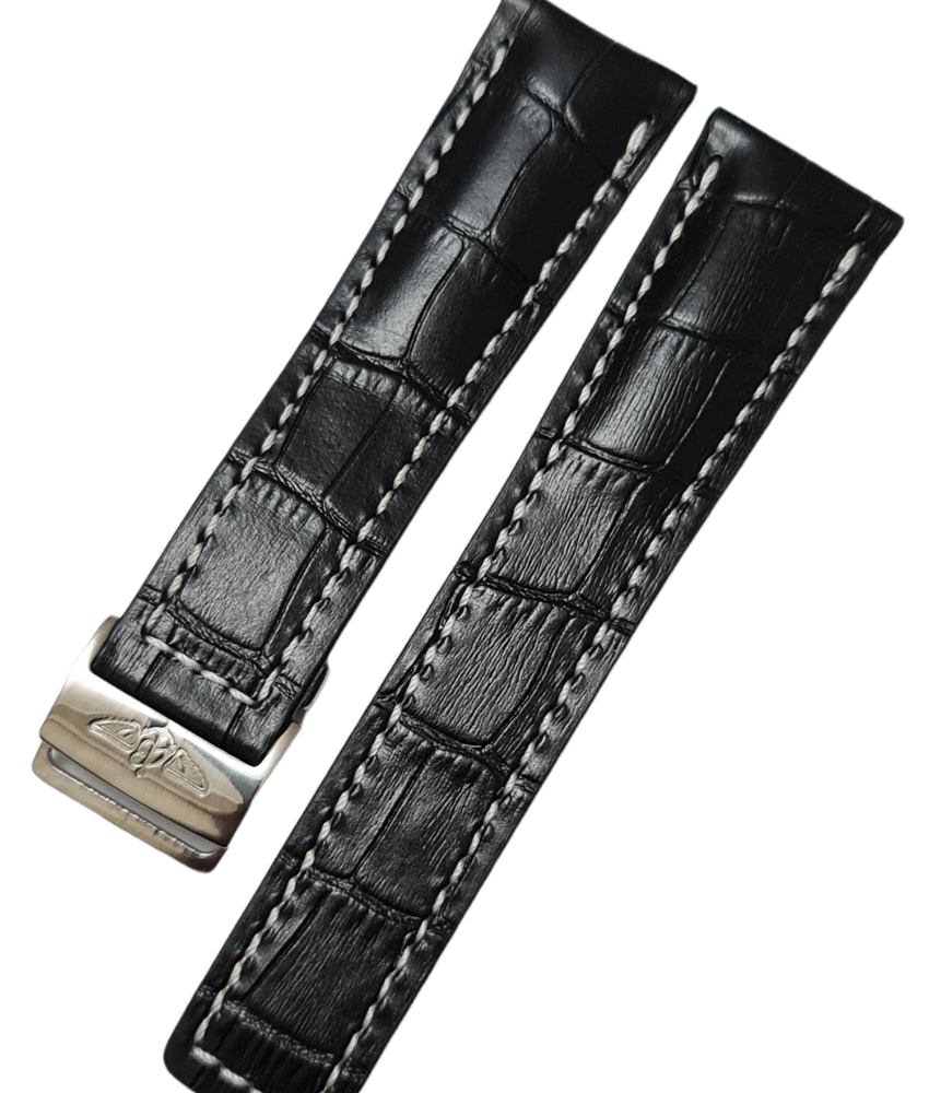 Breitling Tourbillon 24mm Klipsli Siyah Deri Saat Kordonu