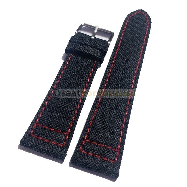 IWC Uyumlu 22mm Siyah tekstil saat kordonu