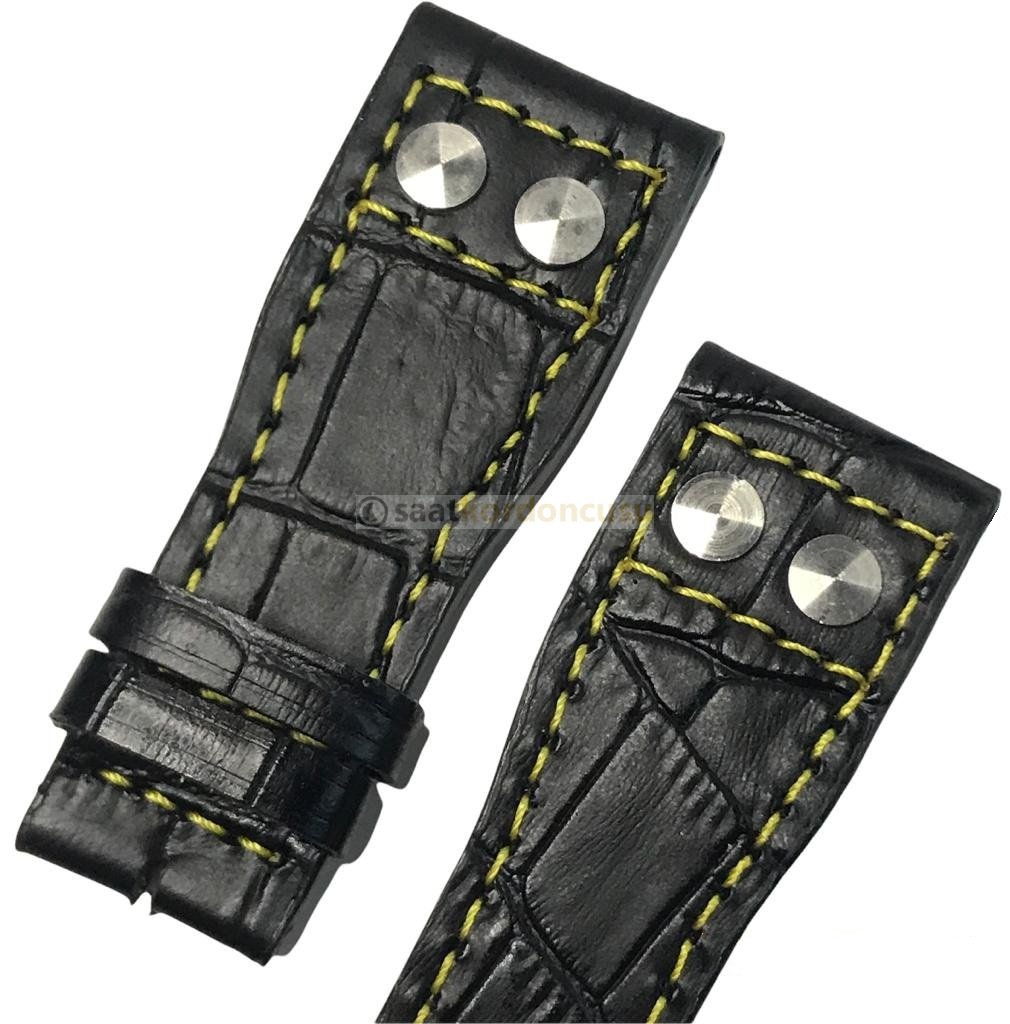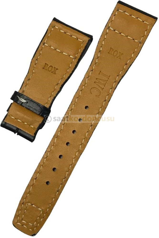 IWC 22mm Siyah Timsah Desenli Sarı Dikişli Deri Saat Kordonu
