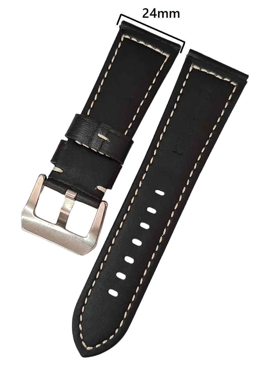 Panerai 24mm Siyah Parlak Yüzeyli Deri Saat Kordonu