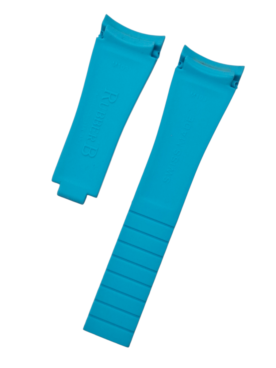 Rolex 21mm Kavisli Mavi Renk Silikon Saat Kordonu