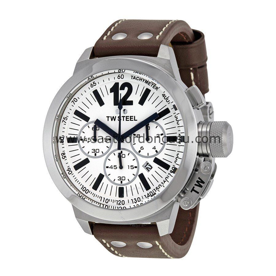 Tw steel 22mm Beyaz Metalli Kahverenk Deri Saat Kordonu